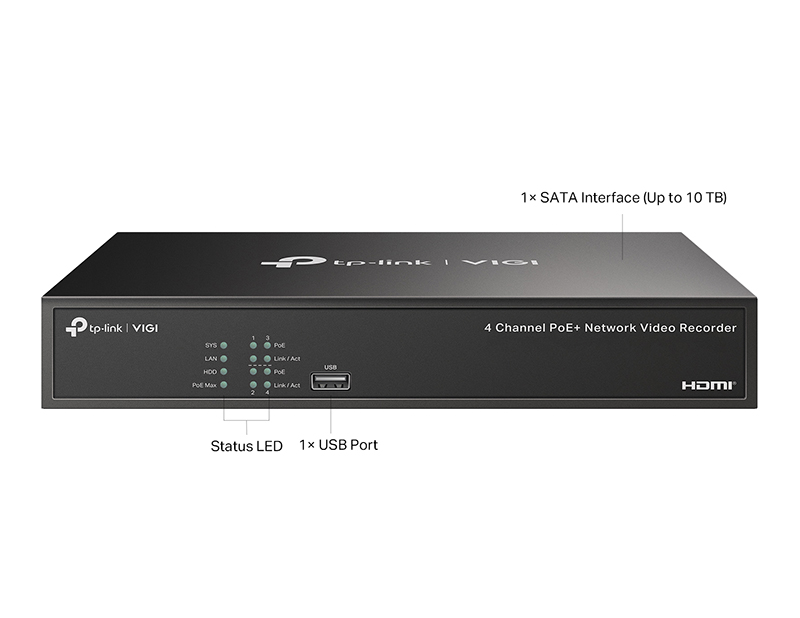 TP-Link VIGI NVR1004H-4P 4 Channel PoE+ Network Video Recorder 8 Mpix, 1x SATA (max 10 TB)