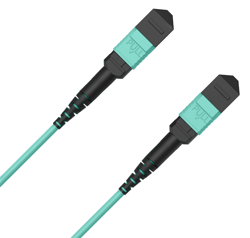 The patch cord is equipped with 12 OM4 multimode fibers in total, offering higher bandwidth and longer transmission distances compared to the previously used OM1, OM2, and OM3 standards.