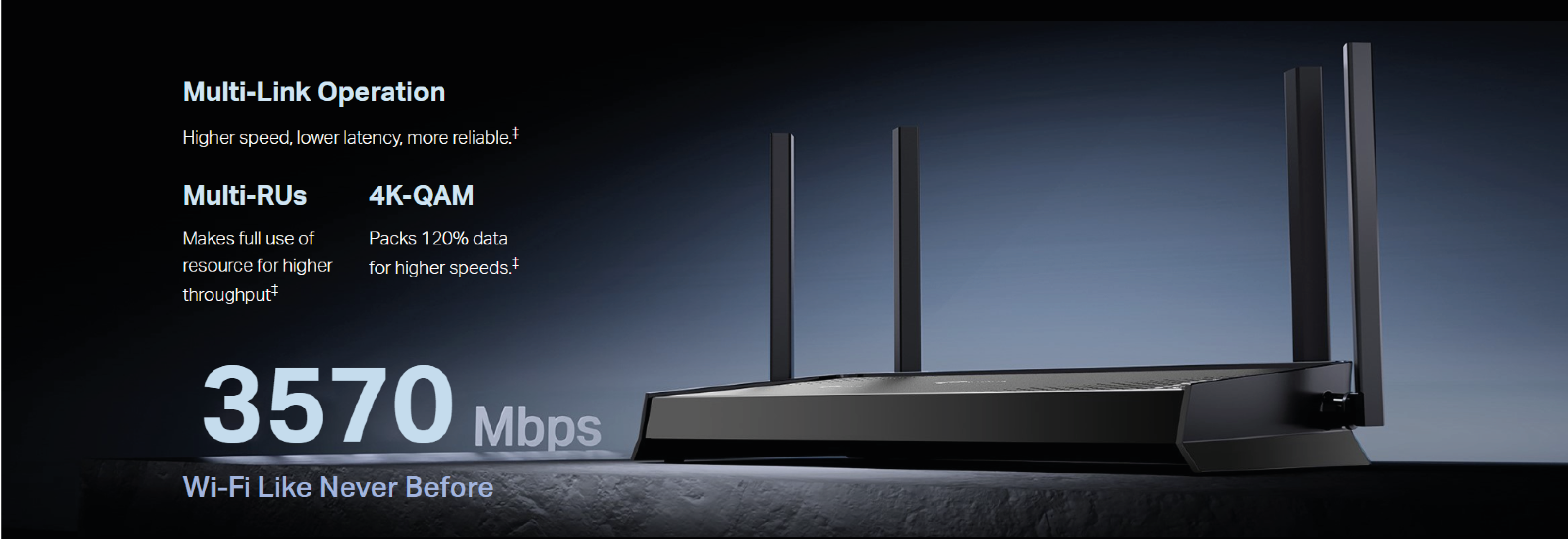 Advanced Features | Multi-Link Operation (MLO) 4K-QAM Multi-RUs EasyMesh-Compatible Works with Alexa and Google Assistant IoT Network |