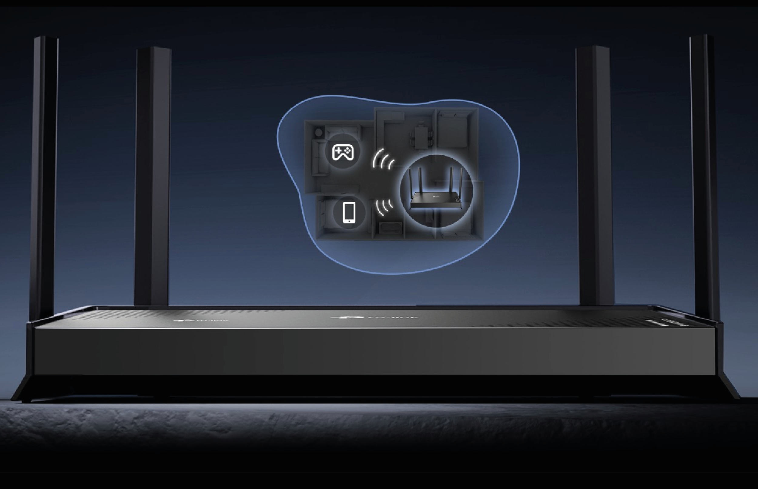 4× high-performance antennas boost WiFi signals throughout your home. Beamforming technology detects devices and concentrates signals towards them, especially to previously hard-to-reach areas.