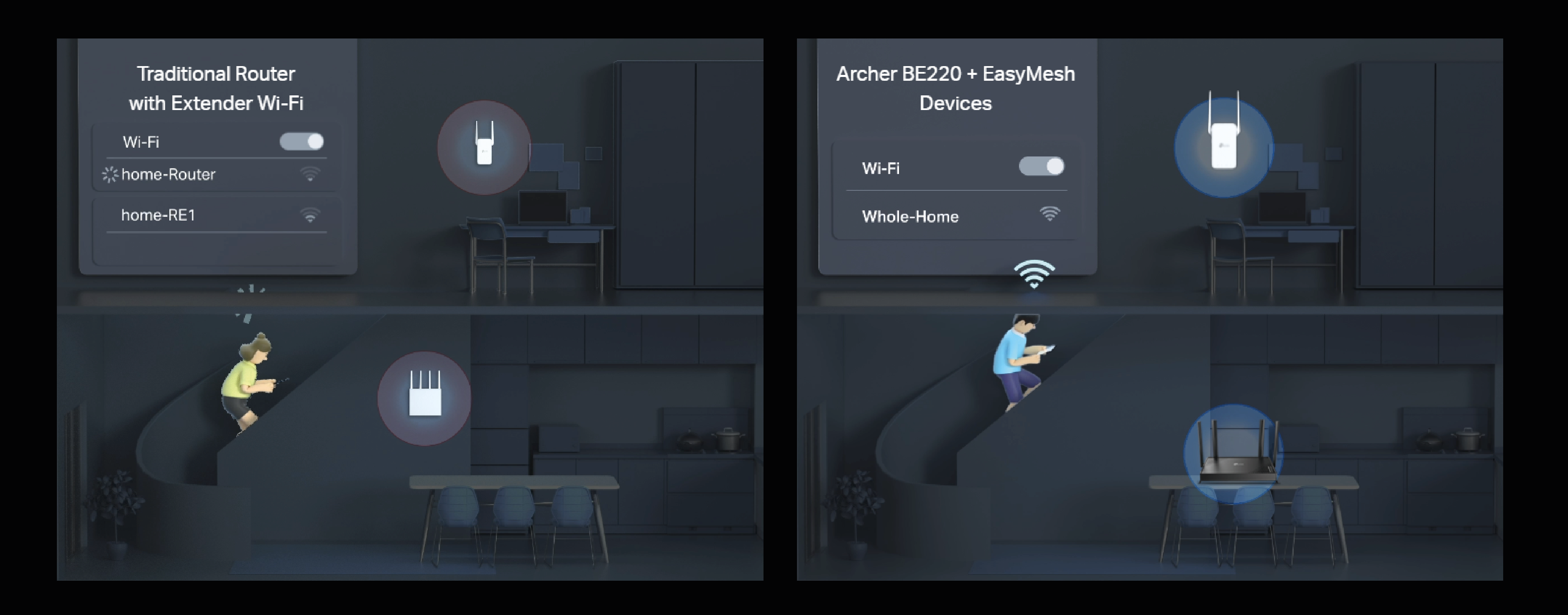 Archer BE220 is EasyMesh-compatible. If you have any dead zones at home, just add another EasyMesh router/range extender to further form your whole home multi-gigabit mesh WiFi. No more searching for a stable connection.