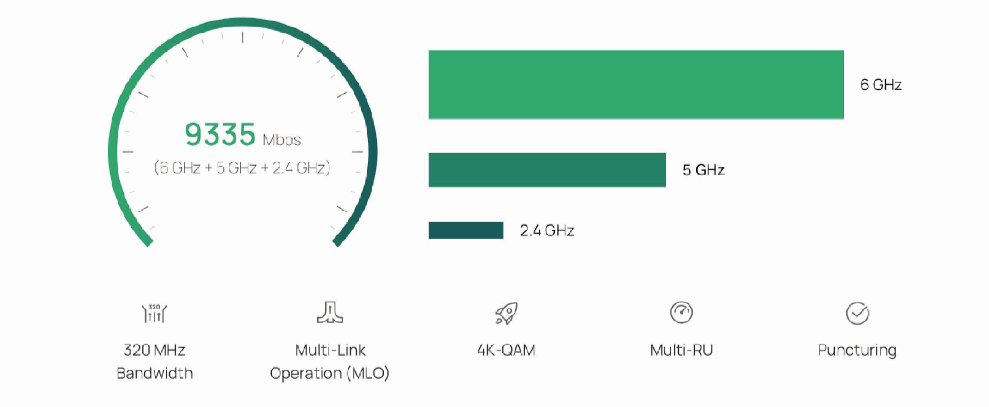 Signal Rate | 688 Mbps (2.4 GHz) + 2882 Mbps (5 GHz) + 5765 Mbps (6 GHz)† |