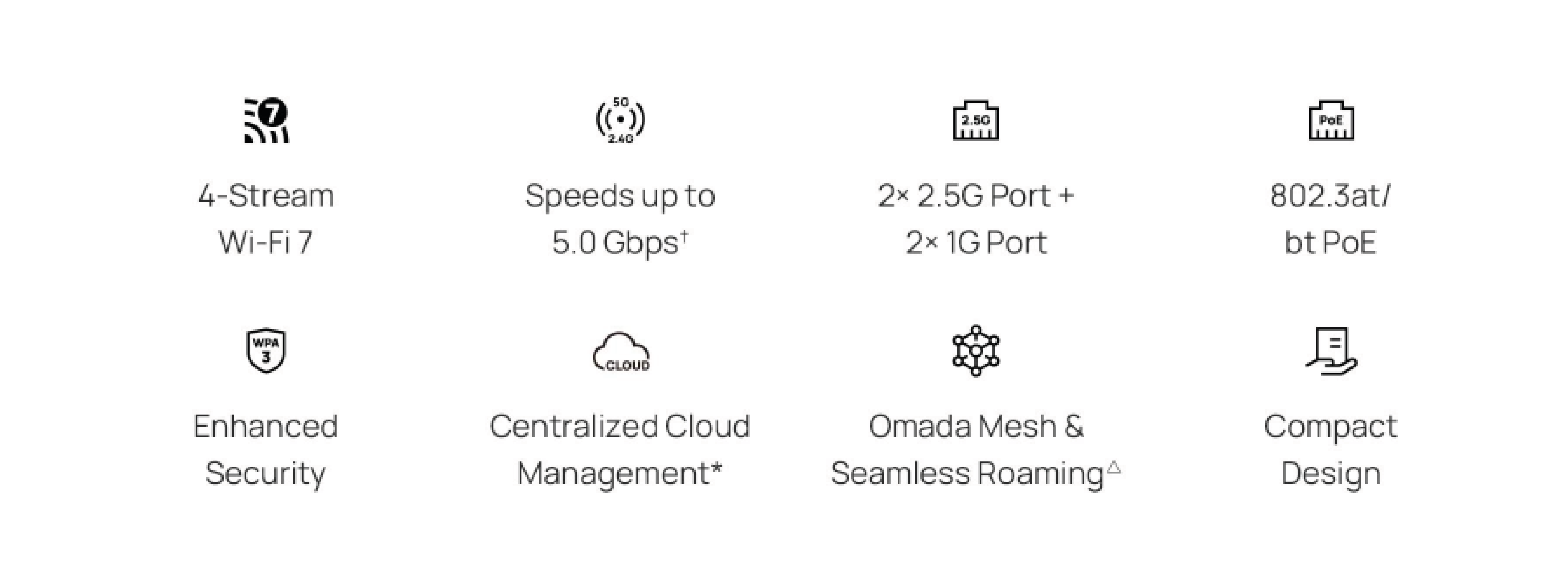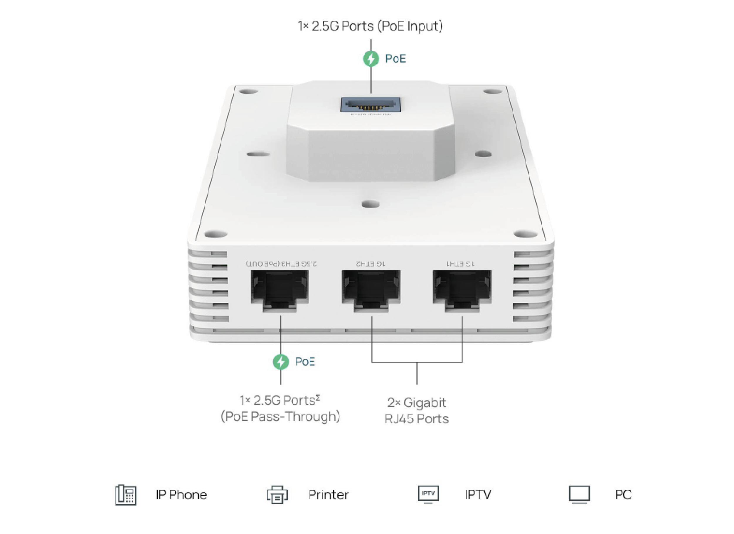 The 2.5Gbps Ethernet port used in the EAP725-Wall delivers multi-gigabit performance for fast Wi-Fi.