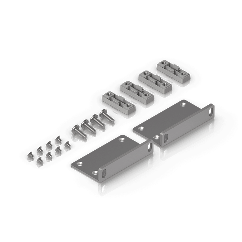 The offered product is a universal set of Rack ears designed for multiple Ubiquiti devices. Instead of standard washers, the screws are equipped with a single large, precise washer that makes device installation easier.