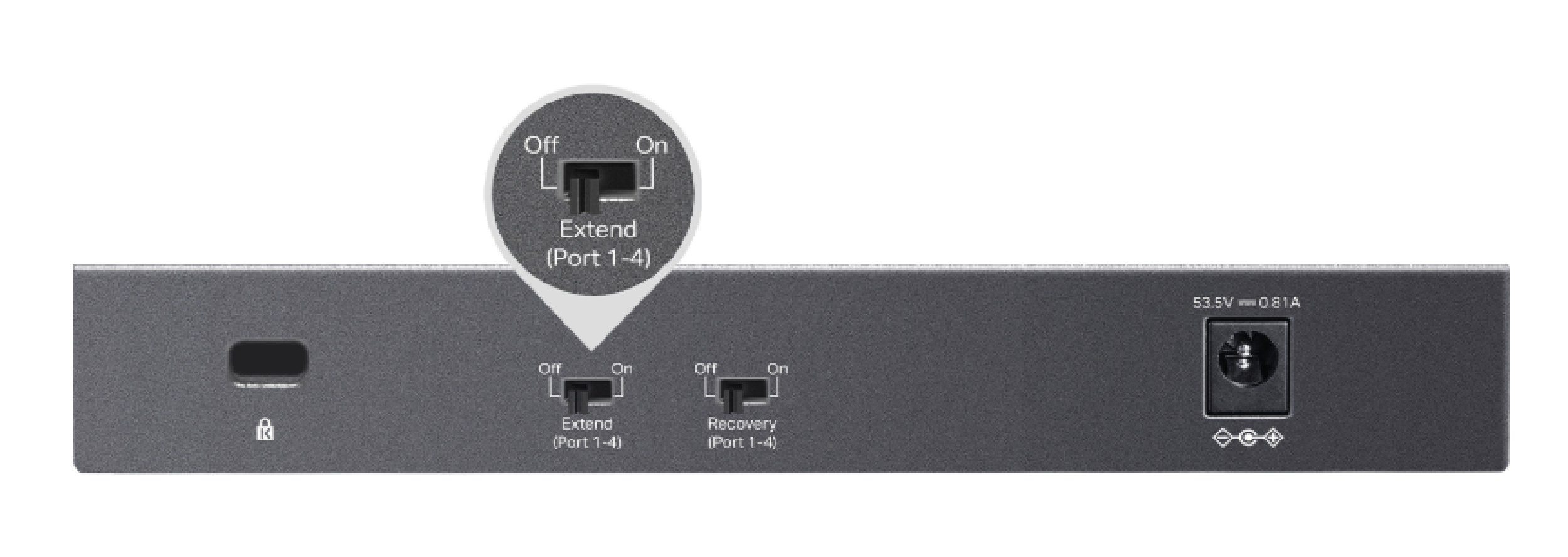 Power Supply | External Power Adapter (Output: 53.5V DC / 0.81A) |