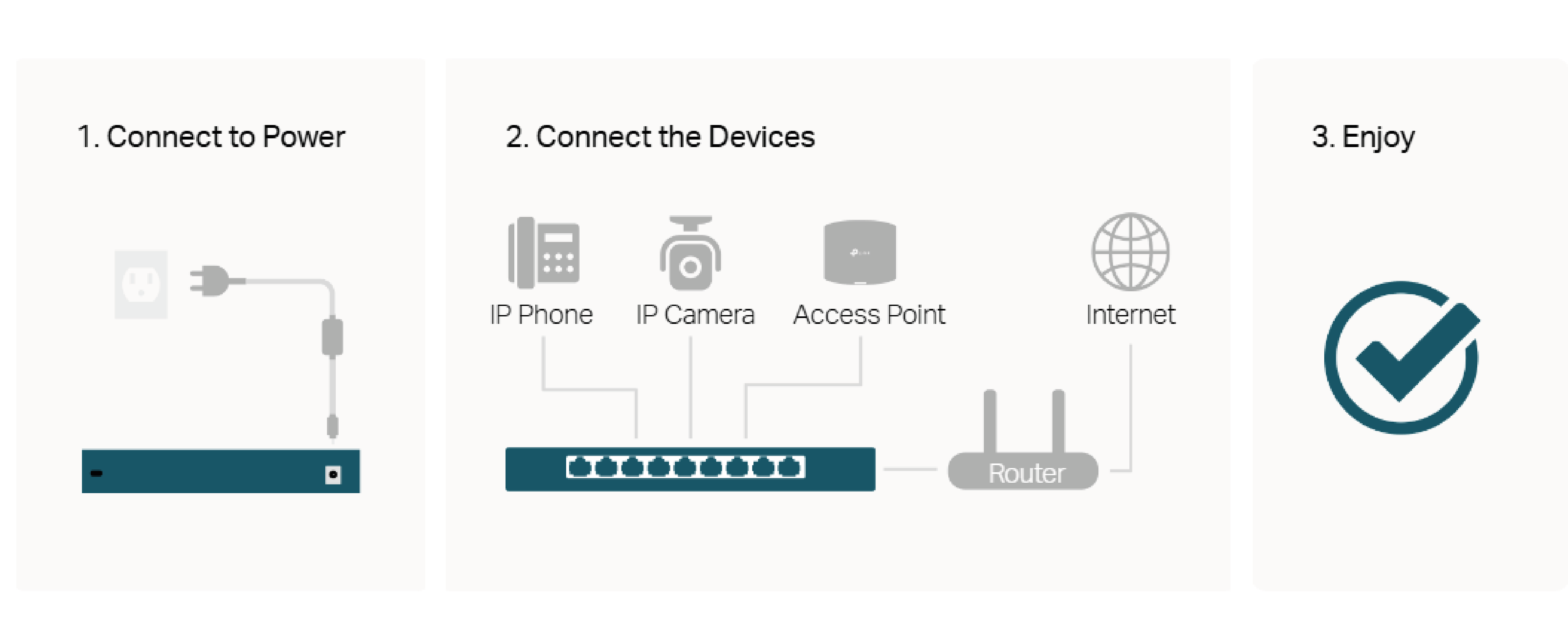 The LS106LP switch complies with IEEE 802.3af/at PoE standards, offering a total PoE power budget of up to 41 W (up to 30W on each PoE port*). When the total power of 41 W is exceeded, the intelligent power management function will cut power to lower-priority ports to protect devices from damage.