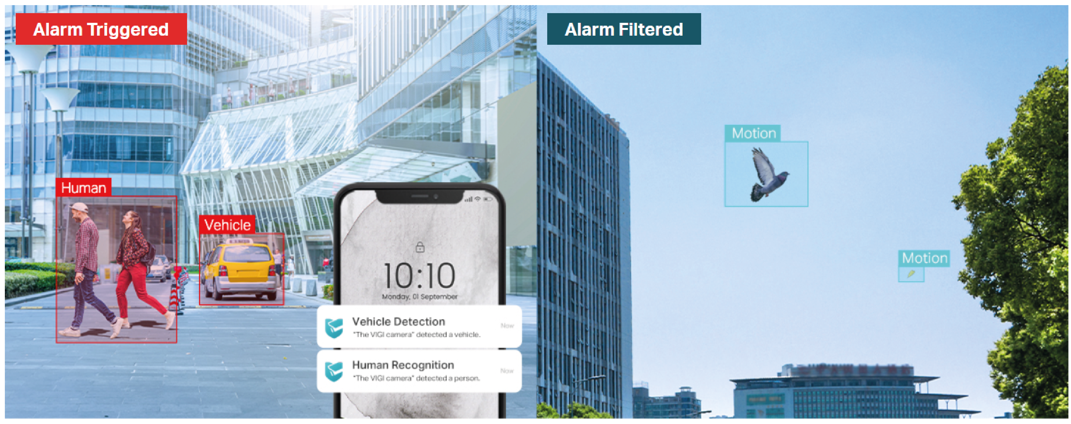 The camera distinguishes people and vehicles from other objects, allowing you to receive more accurate event notifications.