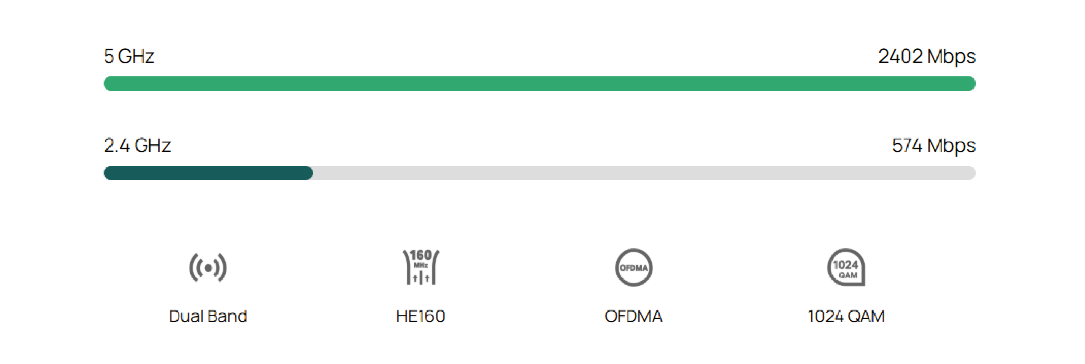 5 GHz: 2402 Mb/s (HE160)