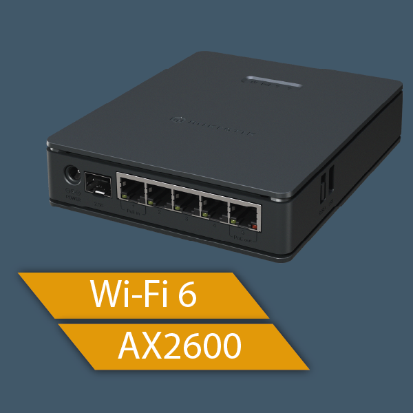 MikroTik hAP ax S is a router that enables the creation of a Wi-Fi 6 wireless network. It supports the IEEE 802.11 b/g/n/ax protocols in the 2.4 GHz band and IEEE 802.11 a/n/ac/ax in the 5 GHz band. The maximum theoretical throughput is 574 Mb/s in 2.4 GHz and 1803 Mb/s in 5 GHz. Such high speeds are possible thanks to the use of 3x3 MIMO in the 5 GHz band (standard routers support 2x2). The device stands out with its performance, featuring a dual-core ARM processor clocked at 950 MHz and 512 MB of RAM. The router comes with the RouterOS v7 system preinstalled with a level-4 license and supports advanced management functions such as VLANs, firewalling, VPN, and many, many others. The offered product is equipped with 5 gigabit Ethernet ports (10/100/1000 Mb/s) and 1 SFP slot, which can operate at 2.5 Gb/s. Additionally, the first Ethernet port includes a PoE input, and the last one a PoE output. This allows you to easily connect an additional device, such as an access point, without the need for a power supply or switch. An additional advantage is the built-in USB port and high-gain antennas (5.5 dBi in 2.4 GHz / 8 dBi in 5 GHz).
