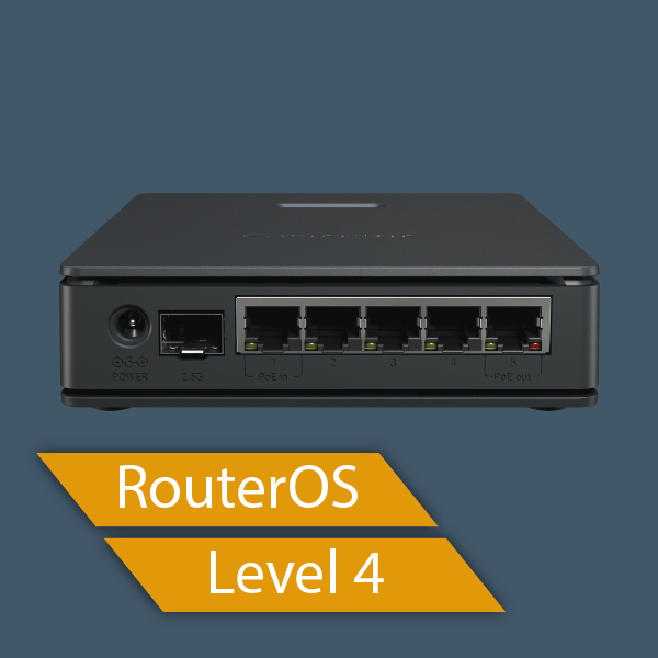 5 x 1G Ethernet ports, 1 SFP slot, PoE input and output
