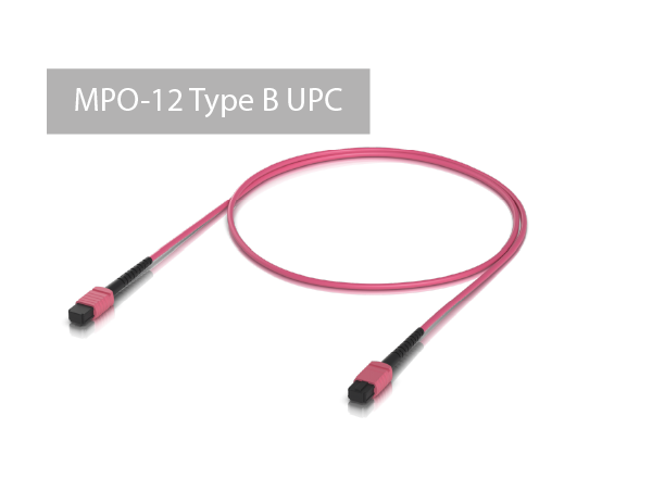 The offered product is a duplex fiber optic patch cord terminated on both ends with MPO-12 Type B UPC connectors. This is a standard widely used in various QSFP modules.
