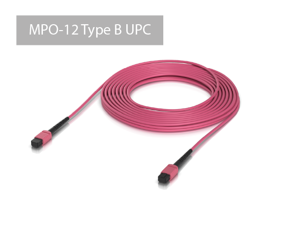 The offered product is a duplex fiber optic patch cord terminated on both ends with MPO-12 Type B UPC connectors. This is a standard widely used in various QSFP modules.