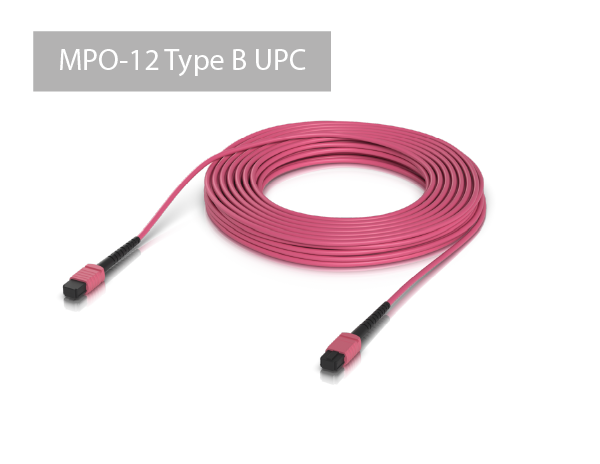 The offered product is a duplex fiber optic patch cord terminated on both ends with MPO-12 Type B UPC connectors. This is a standard widely used in various QSFP modules.