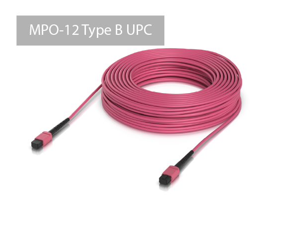 The offered product is a duplex fiber optic patch cord terminated on both ends with MPO-12 Type B UPC connectors. This is a standard widely used in various QSFP modules.