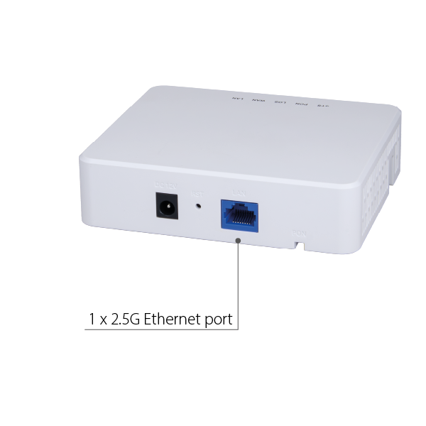 The terminal is equipped with 1 x 2.5G Ethernet LAN port. It provides more than twice the speed of standard 1G ONTs while maintaining an attractive price.