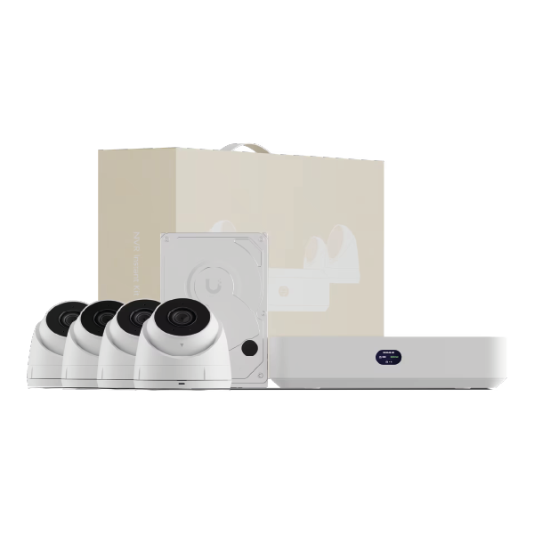 The offered product is a kit intended for creating a monitoring system based on UniFi Protect. It enables the use of live view and playback of recorded footage using the UniFi Protect console or a dedicated application, and it can be easily unified with other systems, for example access points. The kit includes 4 cameras, a recorder with a built-in PoE switch, and a hard drive with a capacity of 1 TB. It is an excellent starter kit which, in many cases, is completely sufficient, for example assuming installation on each wall of a building with a shape close to a rectangle.