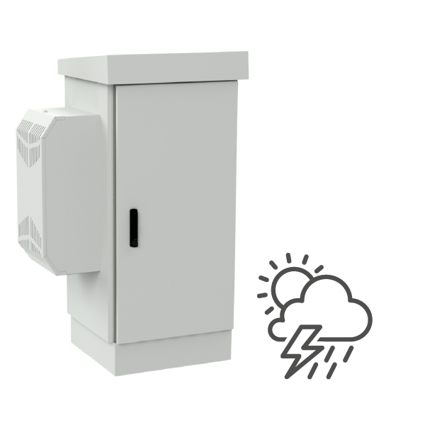 The cabinet features a dual-wall design — it has double walls with air in between, serving as an additional thermal insulator to protect the equipment inside. Along with the product, you receive an integrated 720 W air conditioner. The air conditioner allows for cooling the interior of the cabinet, prevents devices from overheating, and extends their lifespan.