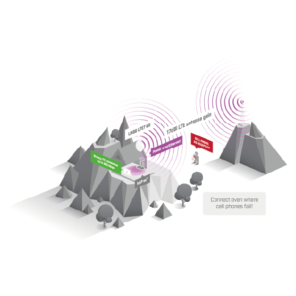 The offered product is a complete wireless device – antenna and radio integrated in a single enclosure. It features an LTE category 7 modem, with a maximum theoretical throughput of 300 Mb/s for downloads and 100 Mb/s for uploads (aggregation of two LTE bands). The device is the direct successor to the LHGG LTE6 kit – it provides two additional bands and better upload throughput while maintaining a lower price. The modem is backward compatible with the 3G standard and supports most frequency bands available in Europe. You can find the full list of supported frequencies in the specification below the product description.