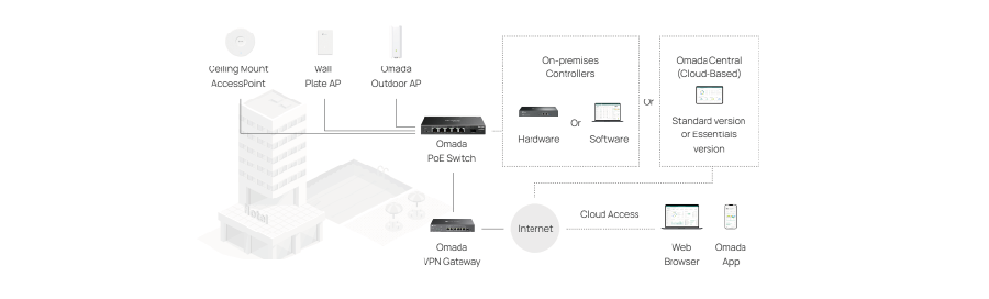 Cloud Access     Yes. Requires use of Omada Hardware Controller, Cloud-Based Controller, or Software Controller.