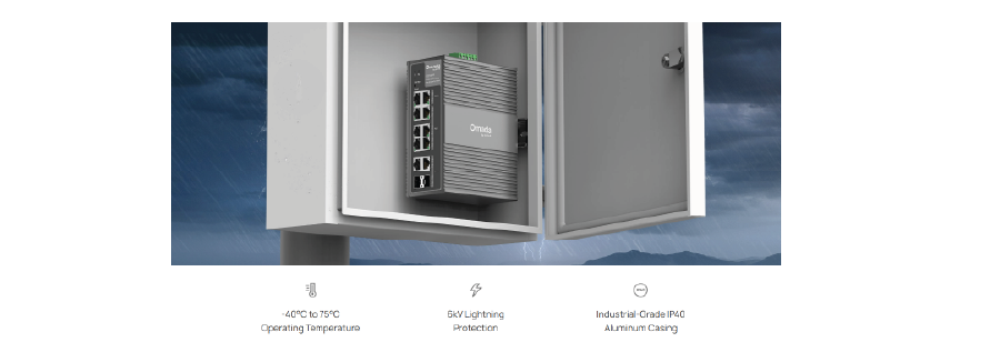 Przemysłowy przełącznik zarządzalny IES210GPP integruje się z systemem Omada SDN i oferuje osiem portów Gigabit RJ45 oraz dwa sloty SFP. Sześć portów miedzianych obsługuje standard PoE+, natomiast dwa dodatkowe wspierają standard PoE++ o wysokiej wydajności prądowej. Urządzenie posiada metalową obudowę IP30 z montażem na szynie DIN i pracuje pasywnie w temperaturach od -40°C do 75°C. Jednostka zapewnia redundancję zasilania przez podwójne wejścia DC oraz obsługuje funkcje warstwy drugiej, w tym VLAN, QoS i STP. Zarządzanie realizowane jest przez platformę Omada lub lokalny interfejs GUI, co predysponuje switch do pracy w trudnych warunkach środowiskowych i systemach automatyki.