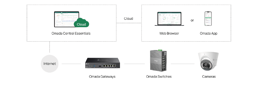 - Bezpłatne, proste i scentralizowane zarządzanie w chmurze przez Omada Central Essentials