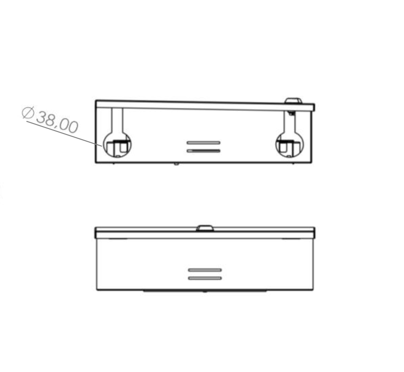 There are two holes each at the top and bottom, designed for cable entry, with a diameter of 38 mm. This makes the distribution box ideal for multi-story buildings when installing vertical cabling.