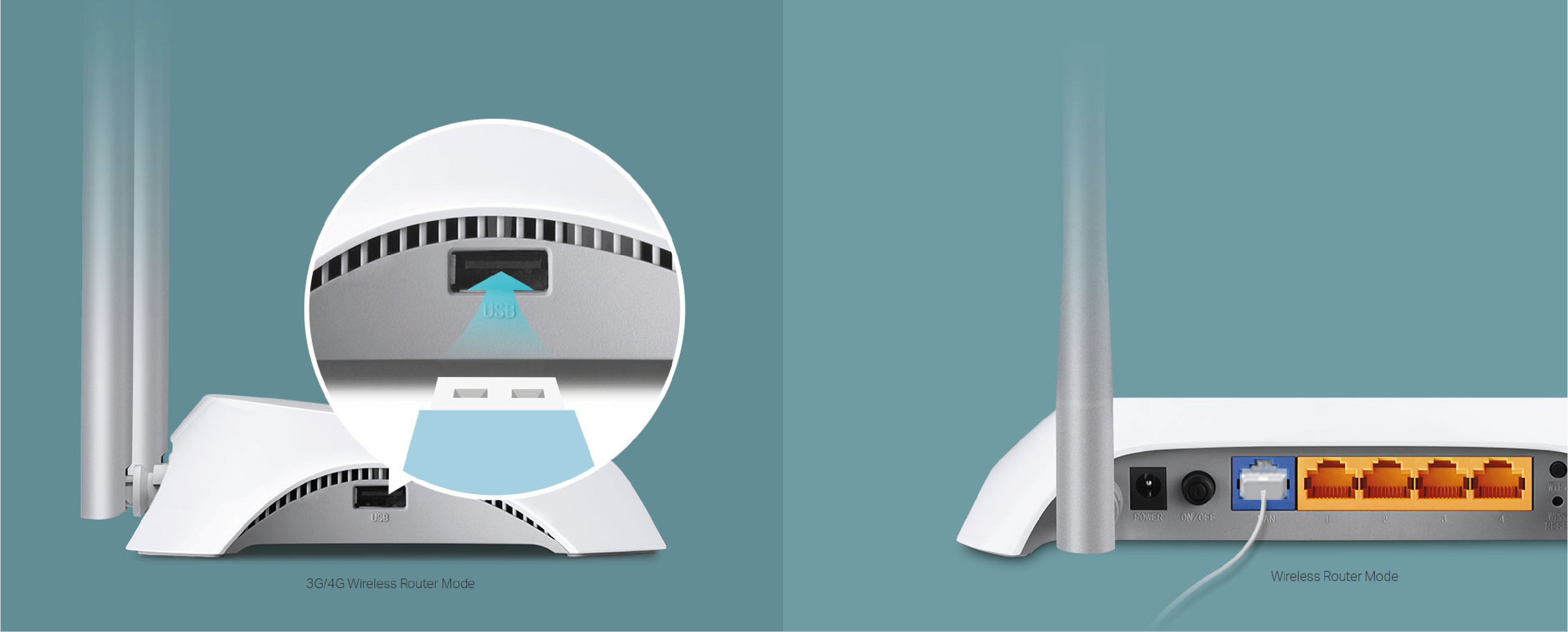 The TL-MR3420 also supports WAN connection via Ethernet cable. This powerful and versatile router allows you to switch between wired WAN connection and wireless 3G/4G connection modes.