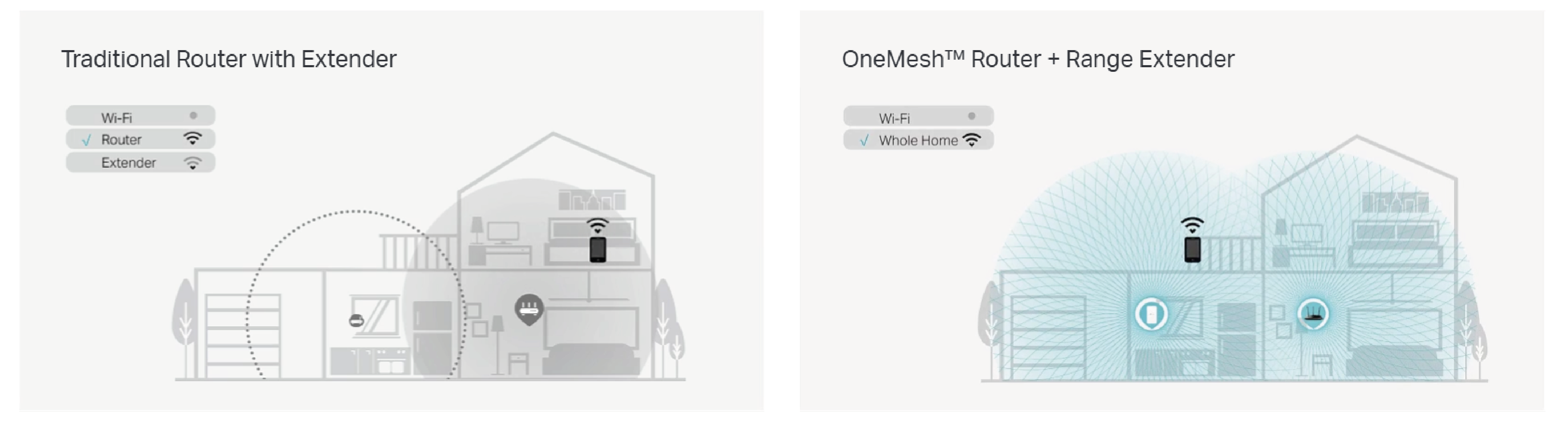 OneMesh™ is a simple way to create a Mesh network with a single Wi-Fi name, with seamless switching and whole-home coverage.
