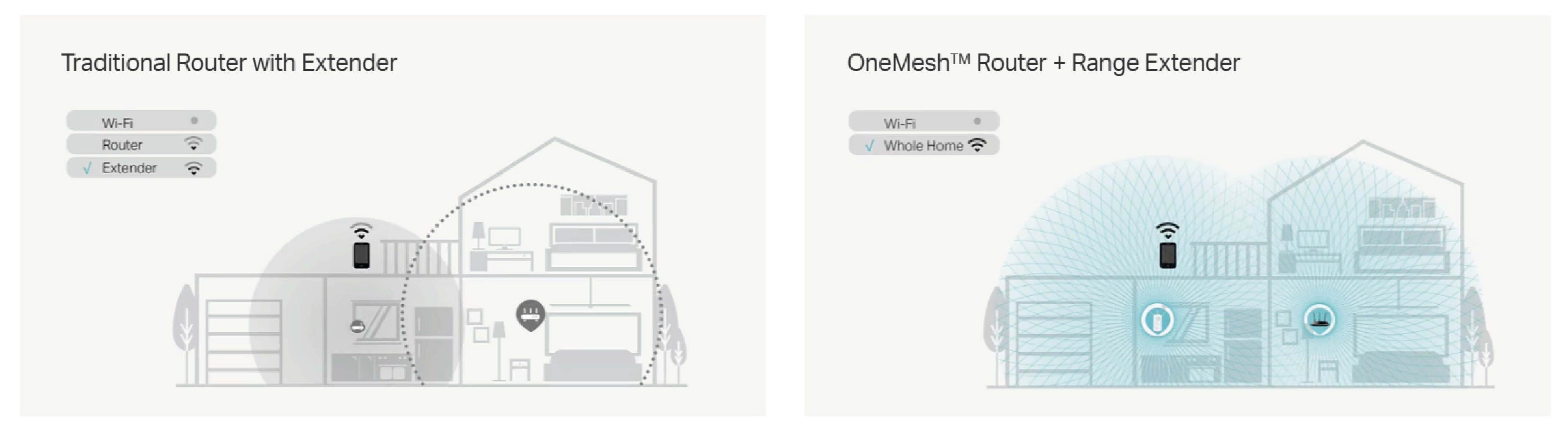 OneMesh™ is a simple way to create a Mesh network with a single Wi-Fi name. Just connect a OneMesh™ extender to a OneMesh™ router and enjoy a stable, seamless connection throughout your home.