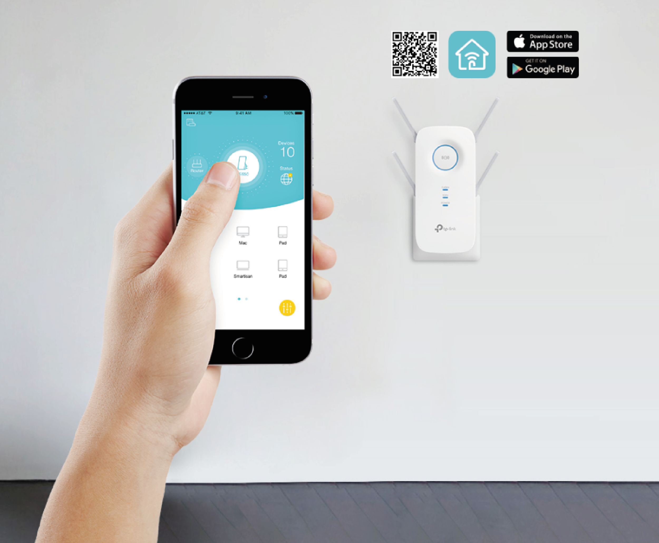 TP-Link Tether is an intuitive application that allows users to constantly monitor the status of the signal extender, control its functions, and change settings on any mobile device.