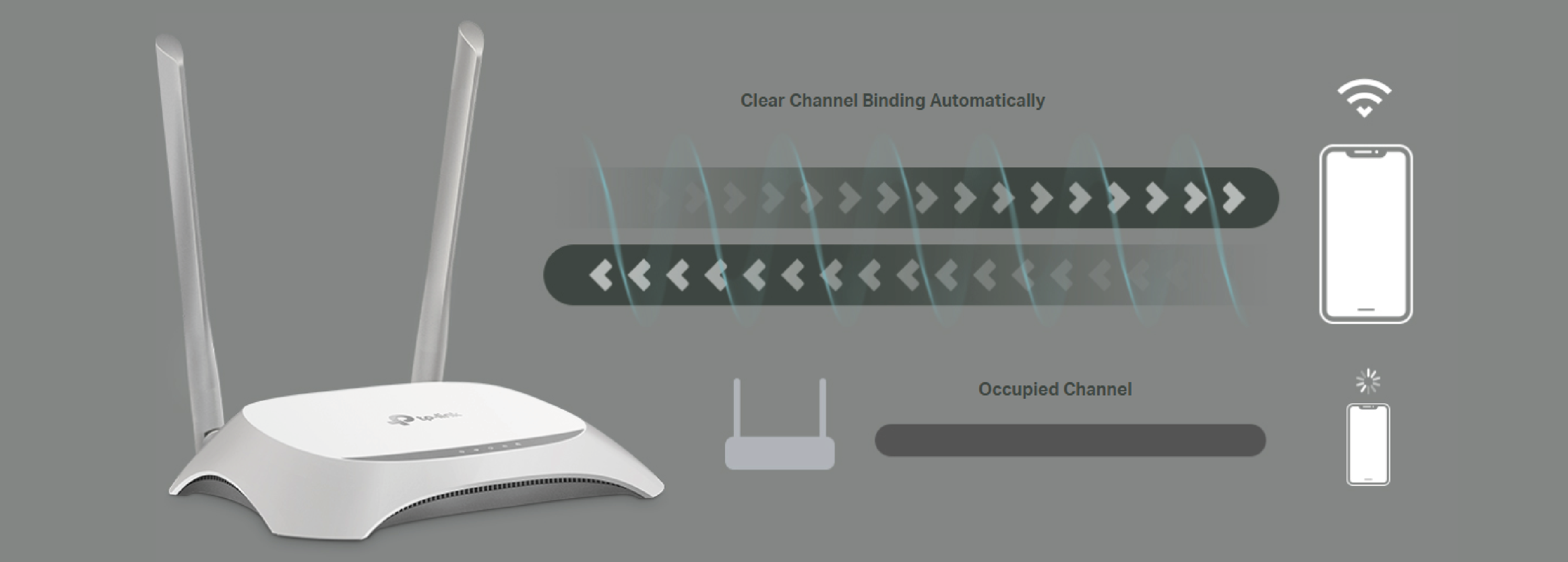 Thanks to the CCA (Clear Channel Assessment) function, the router automatically selects the least congested channel for wireless transmission. This increases network performance through optimal use of the available transmission band.