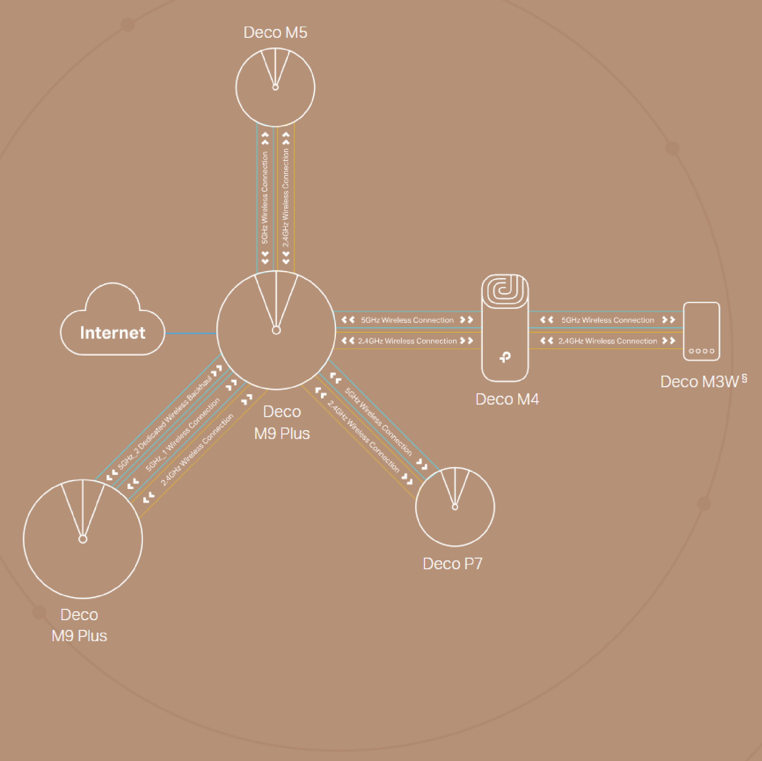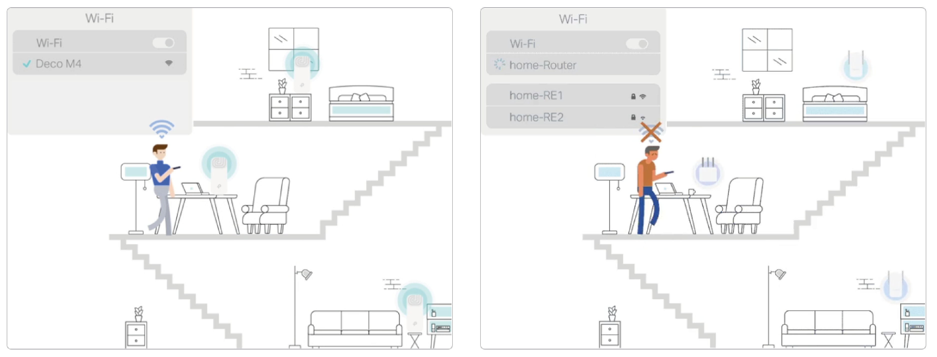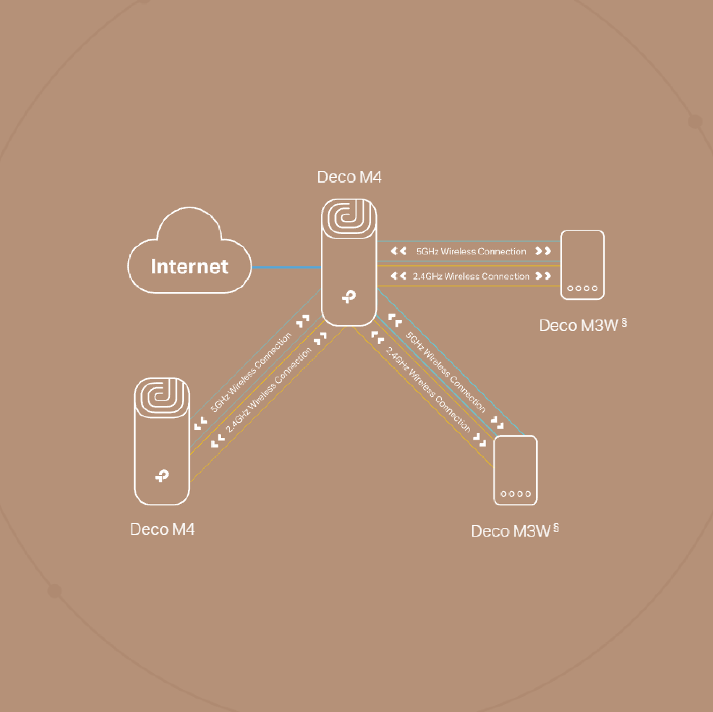 The Deco M4 can create a Mesh network with any other Deco model. To increase network range, simply add more Deco units to it.