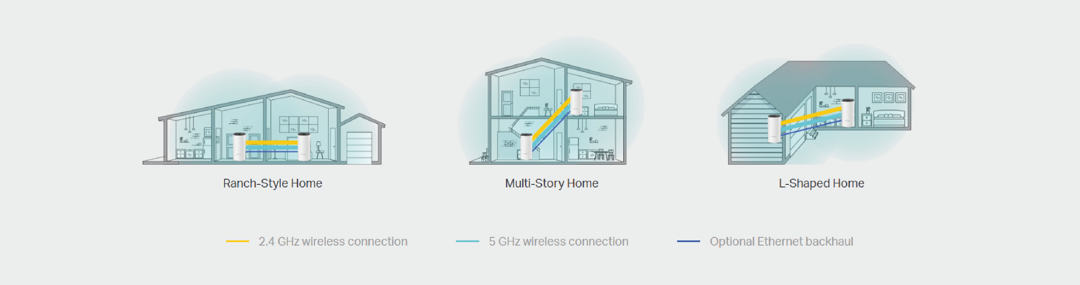 Deco is the simplest way to get a strong wireless signal over the entire surface of your home. A single Deco unit covers an area of up to 180m with a network. Wireless connections and an optional Ethernet backhaul link connect the Deco units, providing an even faster network and the most seamless roaming. Need more Wi-Fi range? Just add another Deco unit.