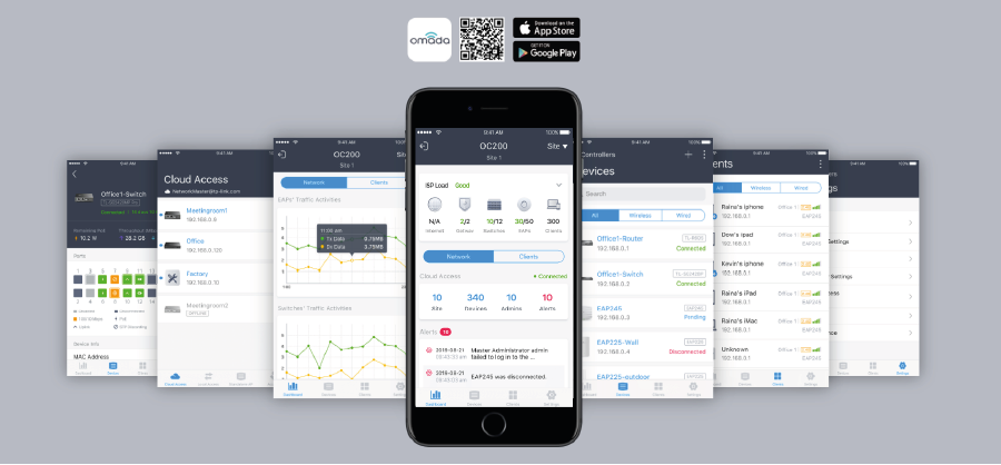 Download the free Omada app today and remotely configure your devices, monitor network traffic, and manage clients using your smartphone or tablet from anywhere in the world.
