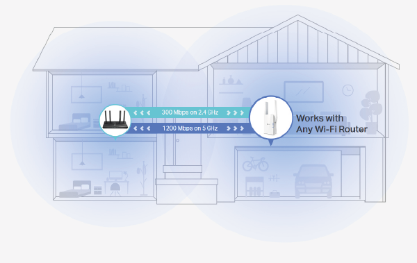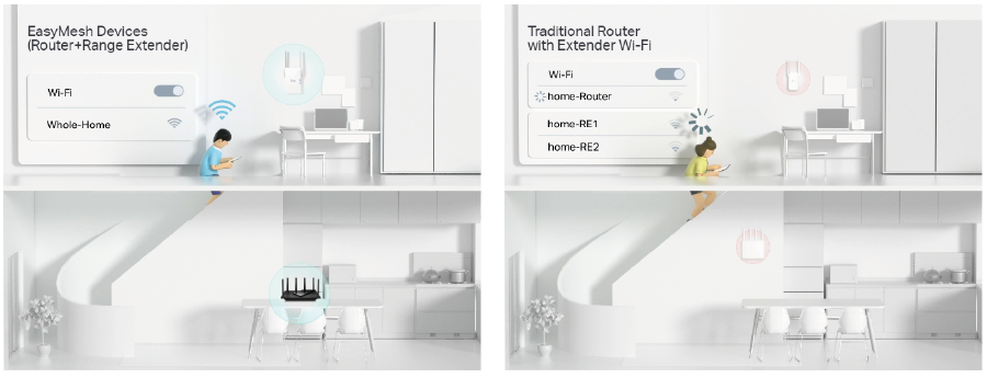 OneMeshTM technology is an easy way to create a unified mesh network, covering the entire area of your home. All you need to do is connect a OneMeshTM signal booster to a OneMeshTM router. You no longer have to wander around the house looking for a stable connection!