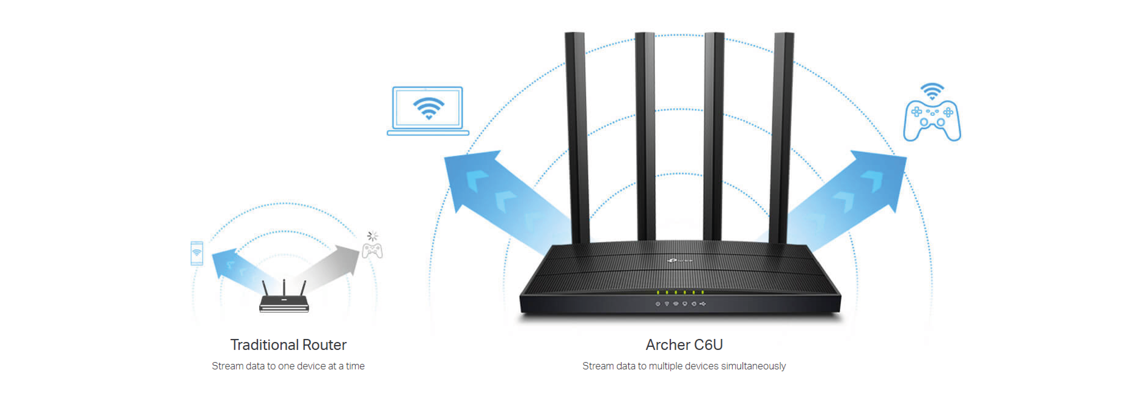 Thanks to MU-MIMO technology, the Archer C6U can handle multiple devices simultaneously. No more network overloads and lags! Devices are serviced faster, and wireless connection performance is significantly greater.
