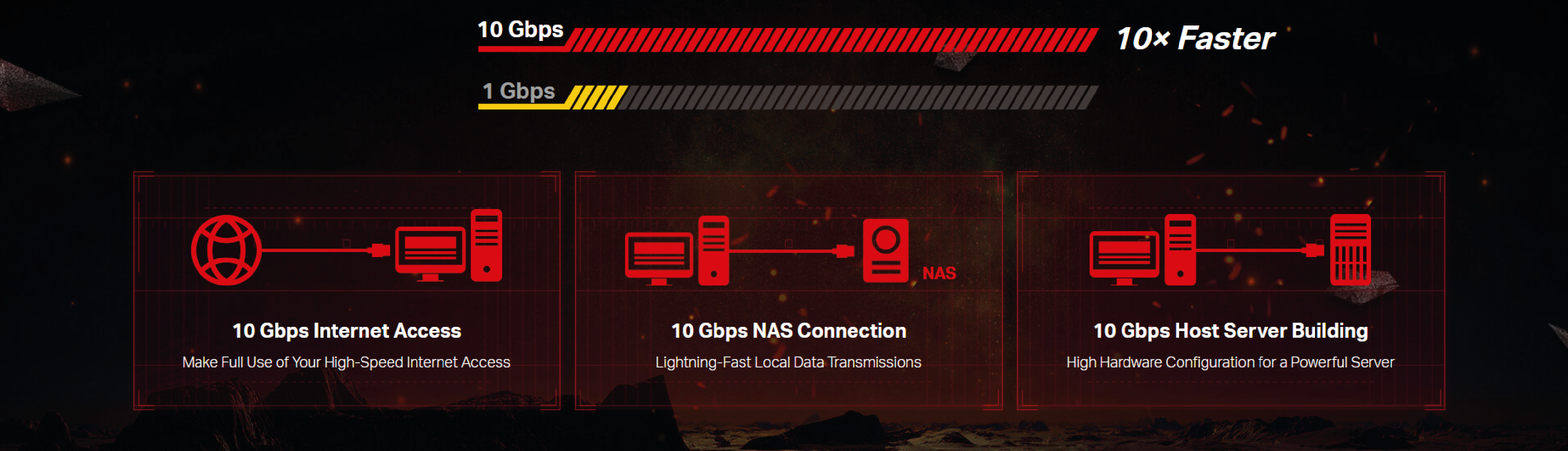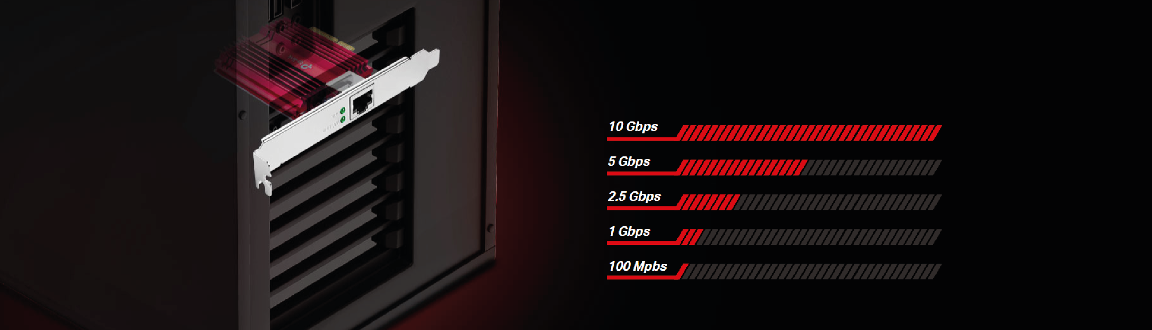 For local connections, the 10G PCIe network card helps build an instantaneous transport channel between the central server and other equipment on the local network. Performing high-bandwidth activities at home or in the office will not be difficult, so the network will easily handle local data transmission as well.