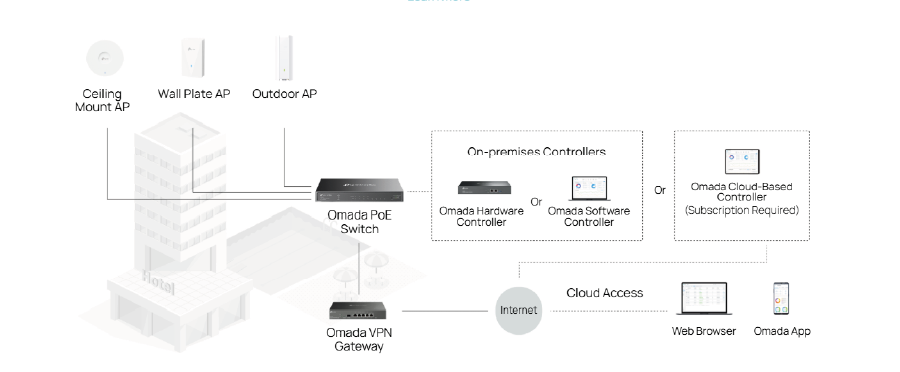 | Cloud Access | Yes (tdrough OC300, OC200, Omada Cloud-Based Controller, or Omada Software Controller) |