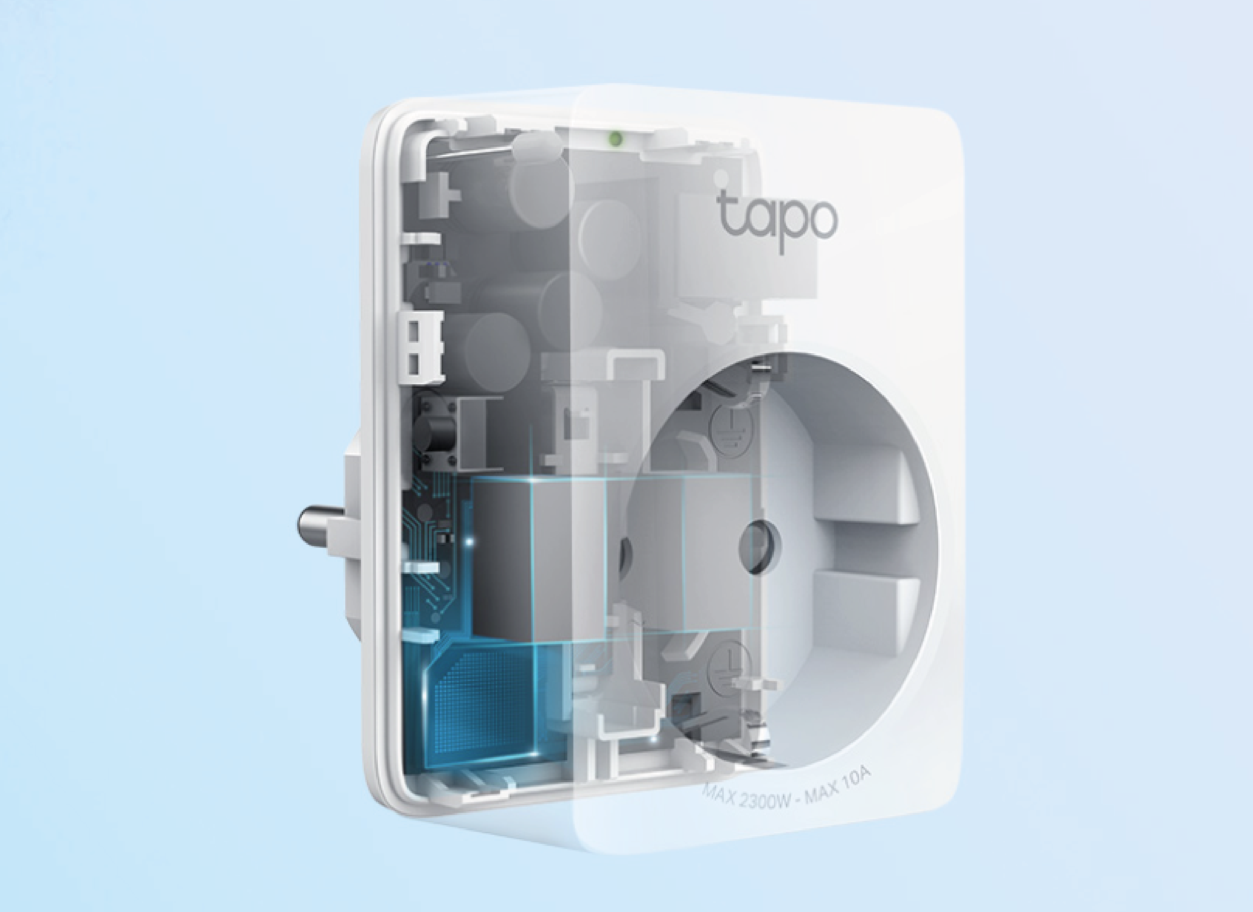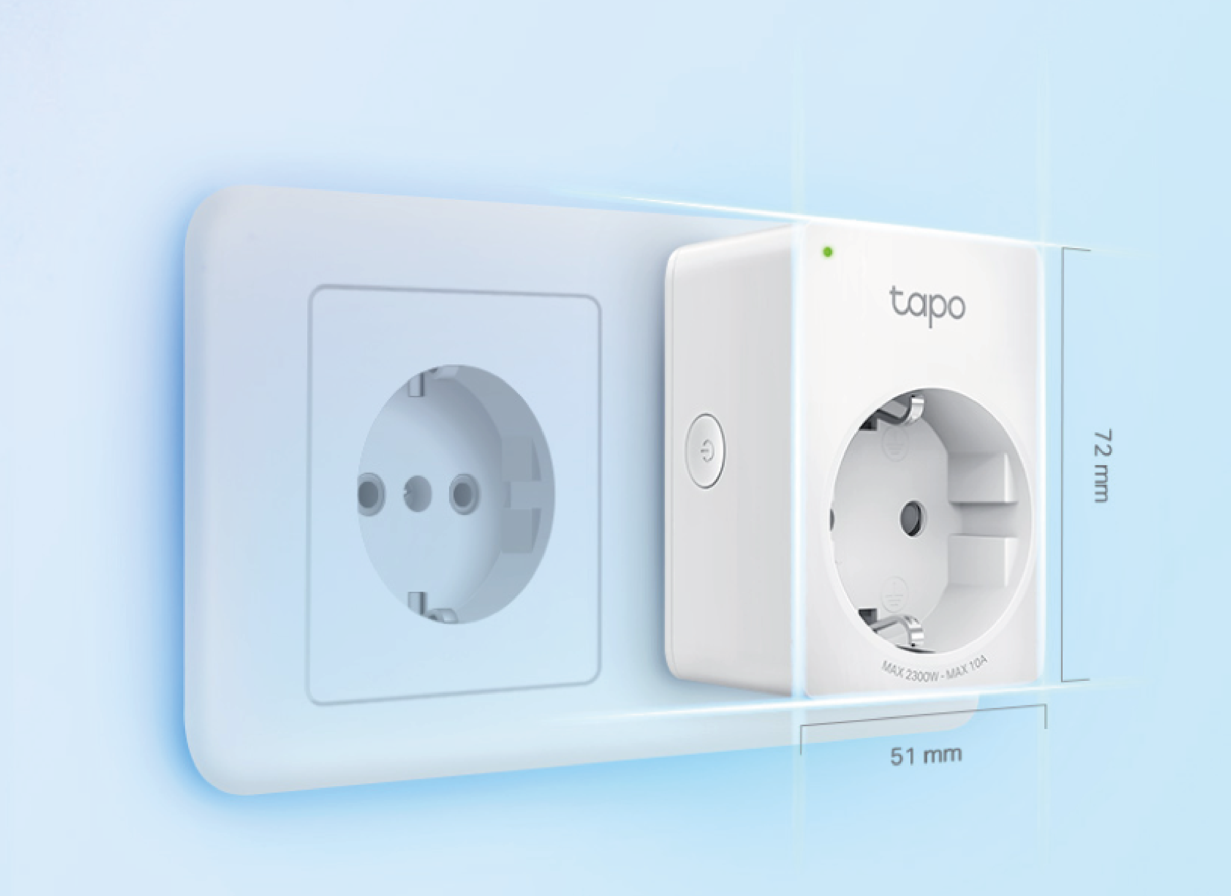 Thanks to its small size, Tapo P100 does not obstruct access to the adjacent socket.