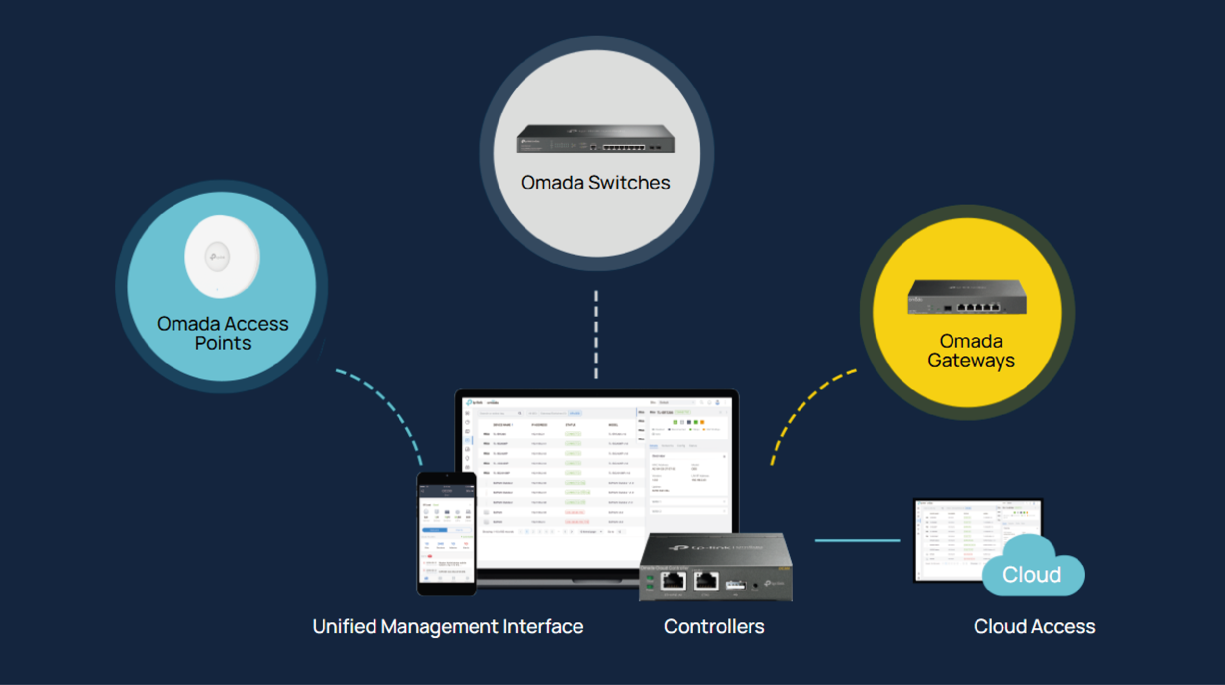 The Omada Software Defined Networking (SDN) platform integrates network devices, including access points, switches, and gateways, providing 100% centralized cloud management. Omada enables the creation of a highly scalable network — fully controlled from a single interface. This translates into seamless wired and wireless connections essential in hospitality, education, retail, offices, and many other industries and facilities.