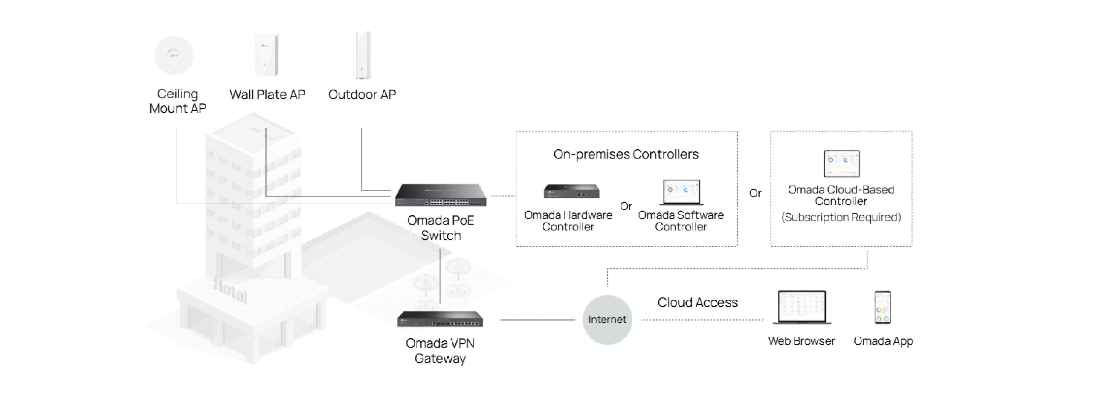 | Advanced Features | • Support Omada Hardware Controller (OC200/OC300), Software Controller, Cloud-Based Controller • Automatic Device Discovery • Batch Configuration • Batch Firmware Upgrading • Intelligent Network Monitoring • Abnormal Event Warnings • Unified Configuration • Reboot Schedule • ZTP (Zero-Touch Provisioning) |